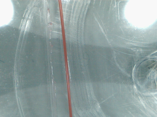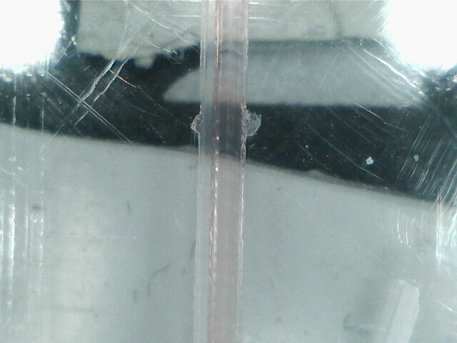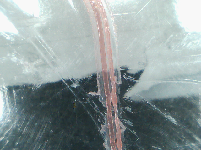 A bit too high stillThe next photo has been leveled too low. The filament is mushed against the bed, but it’s mushed too much, leading to transparent-looking rows of filament. The specific filament I’m using tends to look transparent even when leveled properly, but this is too low regardless: