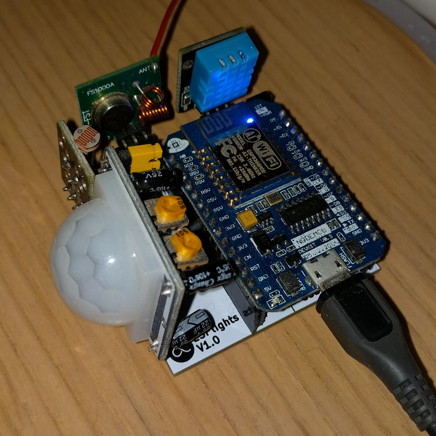 This is achieved by a simple if-check with appropriate values for light and motion. One thing to watch out for was that the board should remember the light state and only turn it on if it’s already off, and vice-versa. This has the pleasant side-effect of allowing me to turn the light on or off if the board thinks it’s controlling it, which lets me turn it off even though I’m in a dark room otherwise, or turn it on even though there is enough ambient light already.