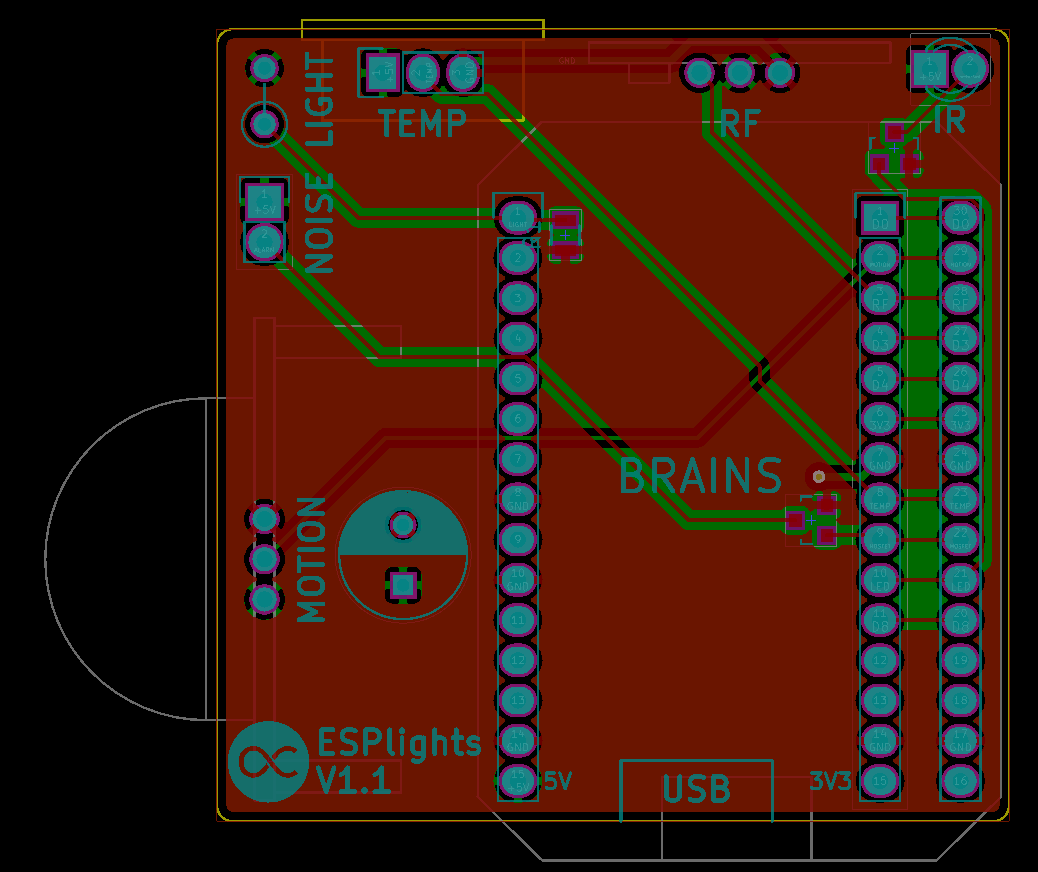 After designing my first PCB, I went on a designing spree. It turns out that making PCBs (printed circuit boards, basically a piece of plastic that includes all the connections of your components in it. It helps make your project smaller and cut down on the amount of wires floating around) is so enjoyable, I’m PCBing all the things! The next victim for PCBfication is a circuit I had originally built on an Arduino and subsequently migrated to an ESP8266.