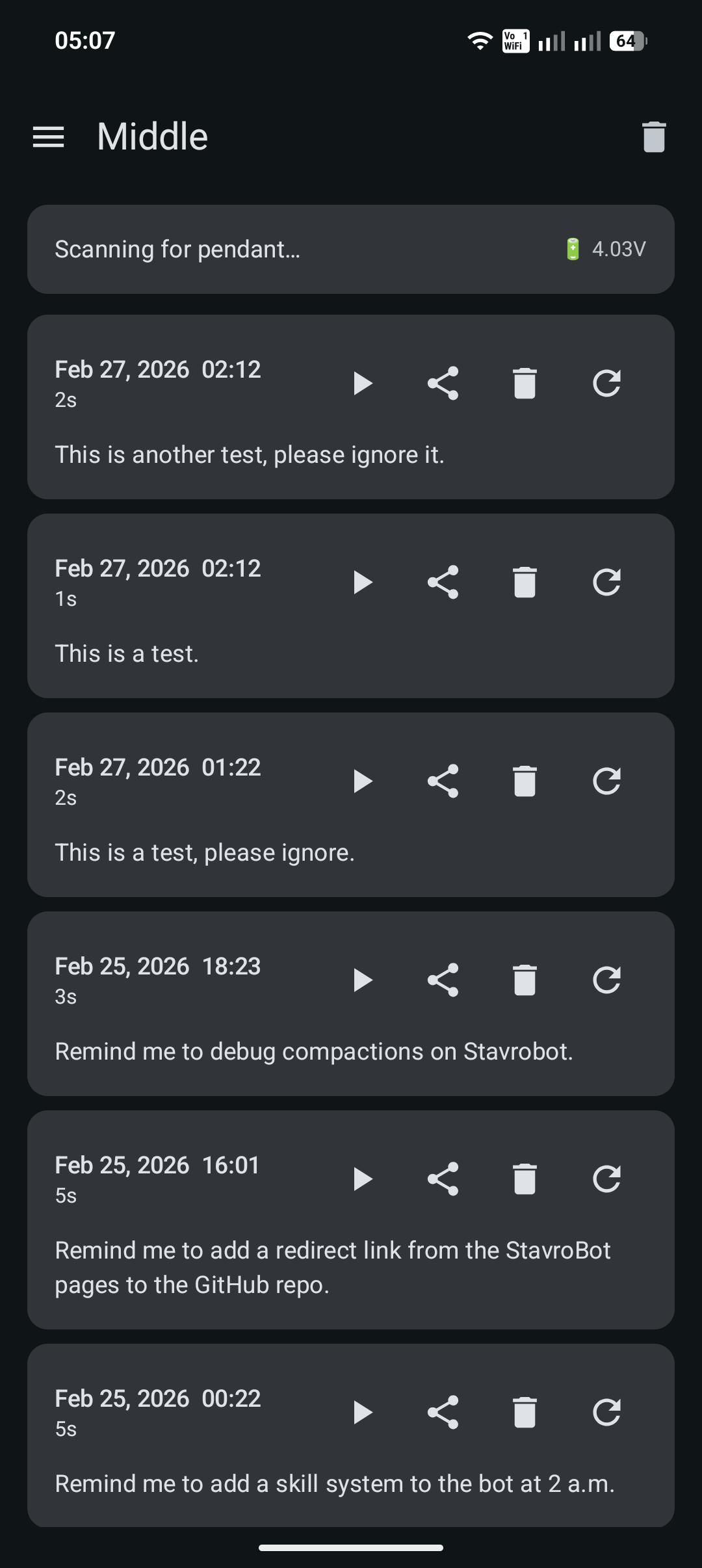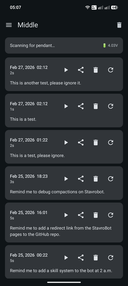 One downside was that transfers would take an inordinate amount of time, sometimes reaching 2 minutes for a 10-second clip. OpenAI’s Codex was really helpful here, finding a solution for fast BLE transfers that made sending files 100x faster than it was before.