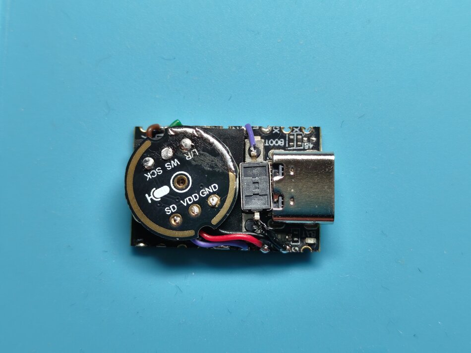 I initially tried to point the microphone downward while mounting it at the top, so it would take up the least amount of vertical space possible, but the PCB made that hard, as the microphone was soldered to it. I ended up desoldering the mic from the PCB, trimming the PCB to make it shorter, and connecting the mic to it with wires. That allowed me to make the case (and thus the device) smaller, but at what cost? Nothing, turns out, because it worked great.