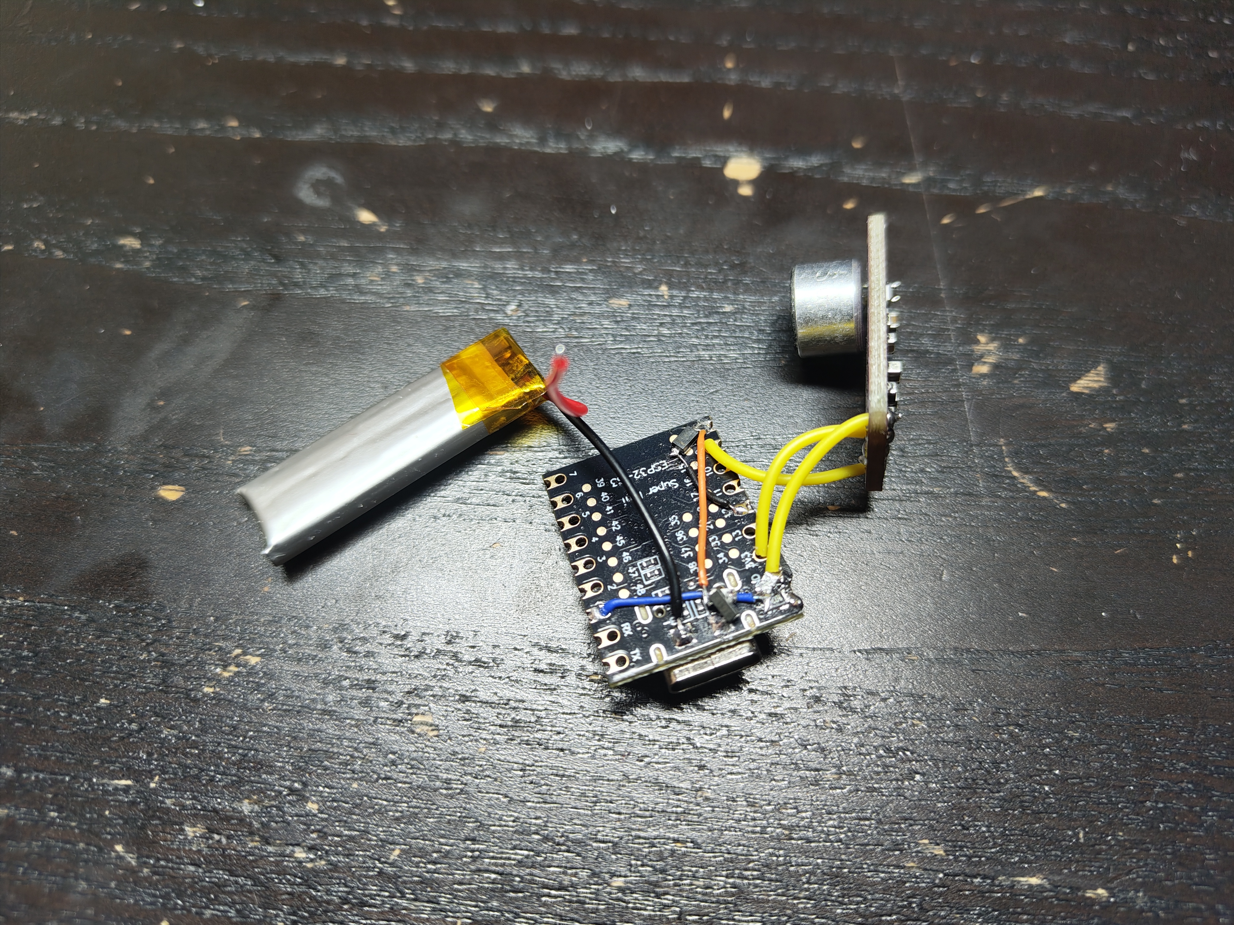 The initial thinking was that I’d use a microcontroller (an ESP32 is my microcontroller of choice these days), a microphone, and a lithium battery, and that’s basically all the hardware this needs! Most of the heavy lifting would need to be done in software. This would need: