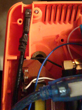 You can see what this looked like in the following video, where the components are in the body of the phone, but it still requires to be plugged in to a USB port for power: